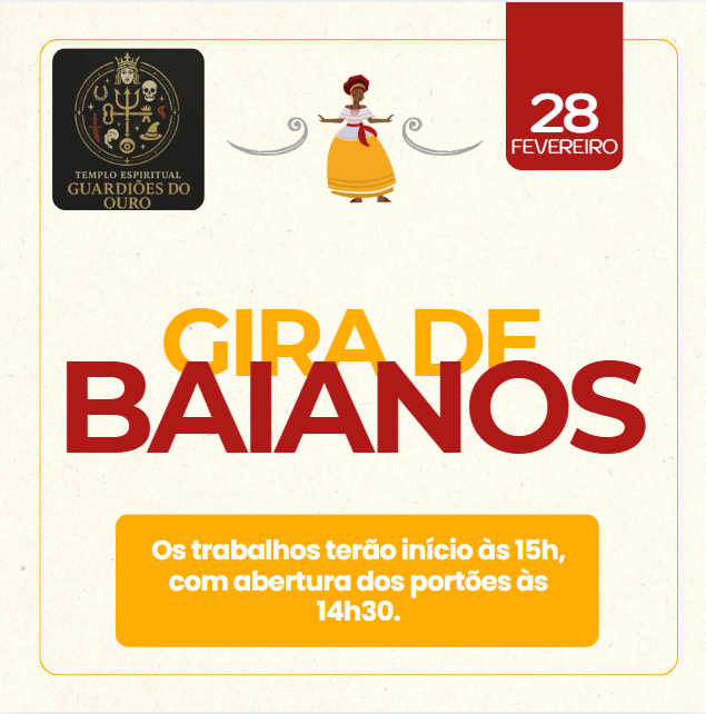 A Gira de Baianos é marcada por muita alegria, simplicidade, força espiritual e profunda sabedoria popular. As entidades conhecidas como Baianos representam o espírito do povo nordestino: trabalhadores, resilientes, firmes na fé e cheios de humildade.